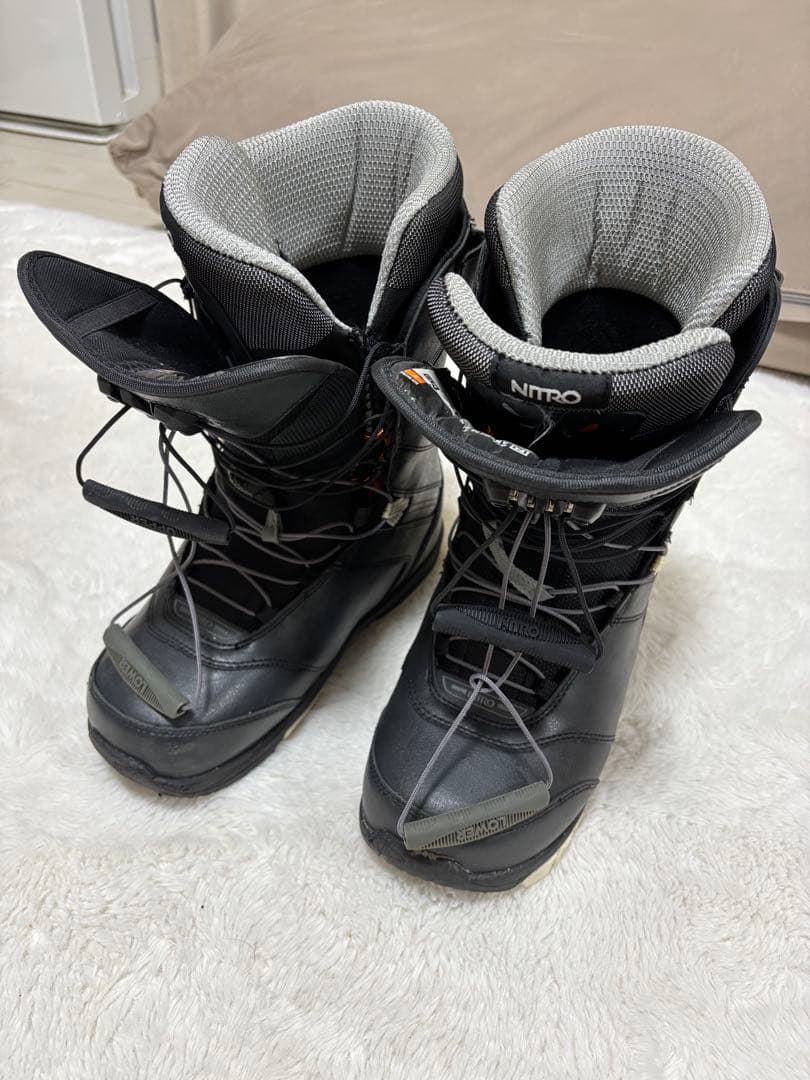 NITRO CLOUD 6 スノーボードブーツ- ブランド: NITRO- モデル名: CLOUD 6- カラー: ブラック/オレンジ- 付属品: モリスポの収納ケースご覧いただきありがとうございます。使用回数はおよそ15回程度です。つま先に目立った傷(皮剥がれ)がありますが、水が染みてくるといったことはありません。複数回使用しておりますので、そこをご理解いただいた上でご購入いただくようにお願いします。不明点、追加の写真をご希望でしたらコメントをお願いします。。thirtytwo STW BOA スノーボードブーツ 28cm。ROME SDS INFERNO スノーボードブーツ ローム 27cm。FLUX ブラック スノーボードブーツ 超美品。スノーボード Burton CONCORD BOA 25cm。スノーボードブーツ DEELUXE EMPIRE エンパイア 25.5cmレビュー